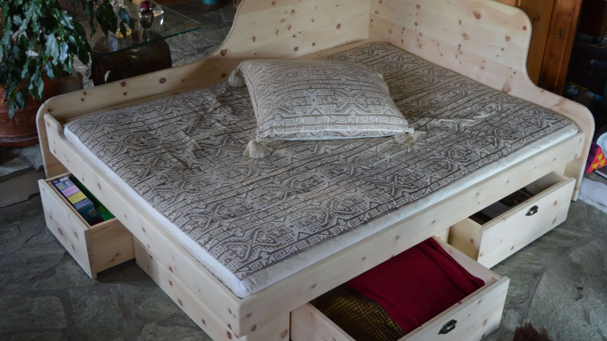 Ein Bett aus massiver Zirbe verbindet handwerkliche Qualität mit der Kraft eines besonderen Holzes. Die ätherischen Öle, vor allem in den markanten Ästen enthalten, prägen Duft und Charakter und werden seit jeher mit erholsamer Ruhe in Verbindung gebracht. Studien weisen auf eine beruhigende Wirkung auf Herzfrequenz und Schlafqualität hin. So entsteht ein geschützter Ort, der Geborgenheit vermittelt - vom Kindesalter an.